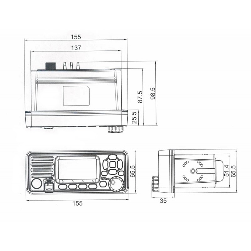 Vhf con Ricevitore Gps e Modulo DSC classe D. Inserito Lidentificativo MMSI (codice dellimbarcazione rilasciata dallapposità autorità) è possibile comunicare con altre imbarcazioni o con le autorità sul canale 70. Display a matrice di punti ad elevata leggibilità. Protetto dalle intemperie IPX7. Funzione di pulitura dellaltoparlante per espellere lacqua. Protocollo Nmea standard 0183 su RS422 . Funzioni Vhf Standard come canale 16, Distress, dual/Tri-Watch, scansione dei canali. Possibilità di collegare un altoparlante esterno. Contenuto confezione: Microfono palmare, staffa fissaggio, antenna Gps, cavo alimentazione.