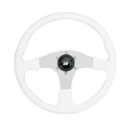 Volante Corsica impugnatura morbida, razze in allumino colore argento. Cono universale