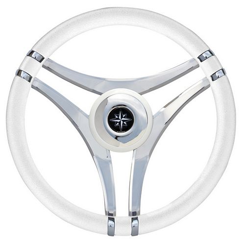 Volante impact con razze in acciaio inox con corona in poliuretano morbido e cono universale Ultraflex, morse e Teleflex.