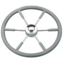 Volante a 6 razze con impugnatura e razze in acciaio inox rivestitein poliuretano morbido, colore grigio.