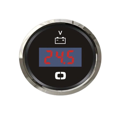Voltometro digitale dotato di quadrante retroilluminazione sia rossa sia gialla per equipaggio elettrico barca camper.