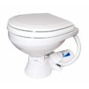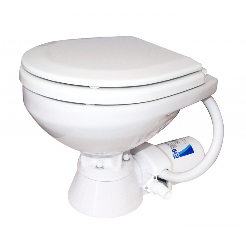 Wc marino elettrico JABSCO COMPACTin porcellana bianca, sedile in legno smaltato. Interruttore per il comando della pompa. Conforme USCS 183-410 e ISO 8846 Marine (protezione accensione). Portagomma di entrata Ø mm.19, portagomma di uscita Ø mm 25. Dimensioni mm altezza 351 x larghezza mm 352 x 430 profondità. Peso kg 15,4